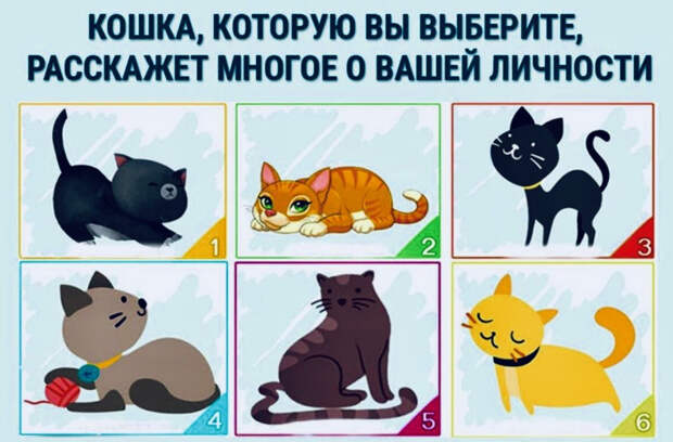 Выберите кошку, которая вам больше всего понравилась и узнайте много интересного о своей личности! Тест поражает своей правдивостью! Проверьте на себе!